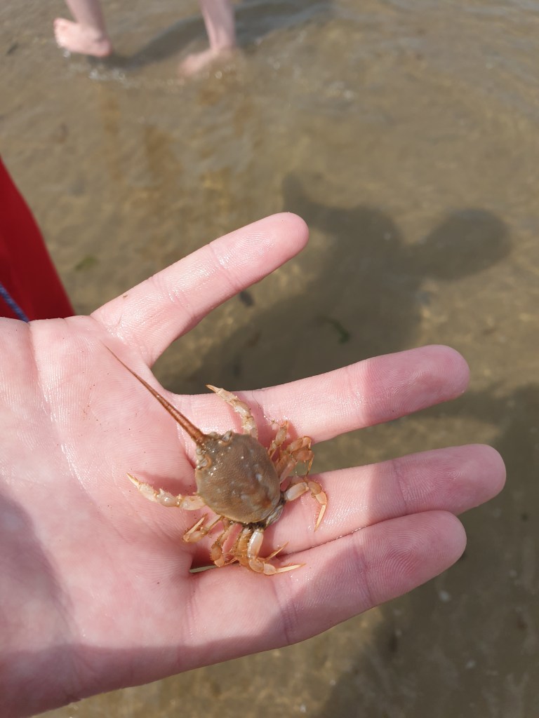 We did find another species called a “Masked Crab” or “Corystes cassivelanus”. A distinctive shape with long antenna at the front.