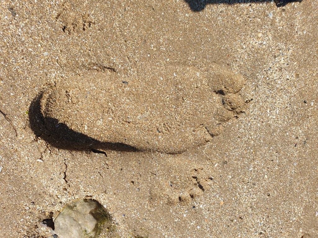 Lots of footprints on a busy beach or less so on a less crowded one. Some in footwear of different types and others barefoot.