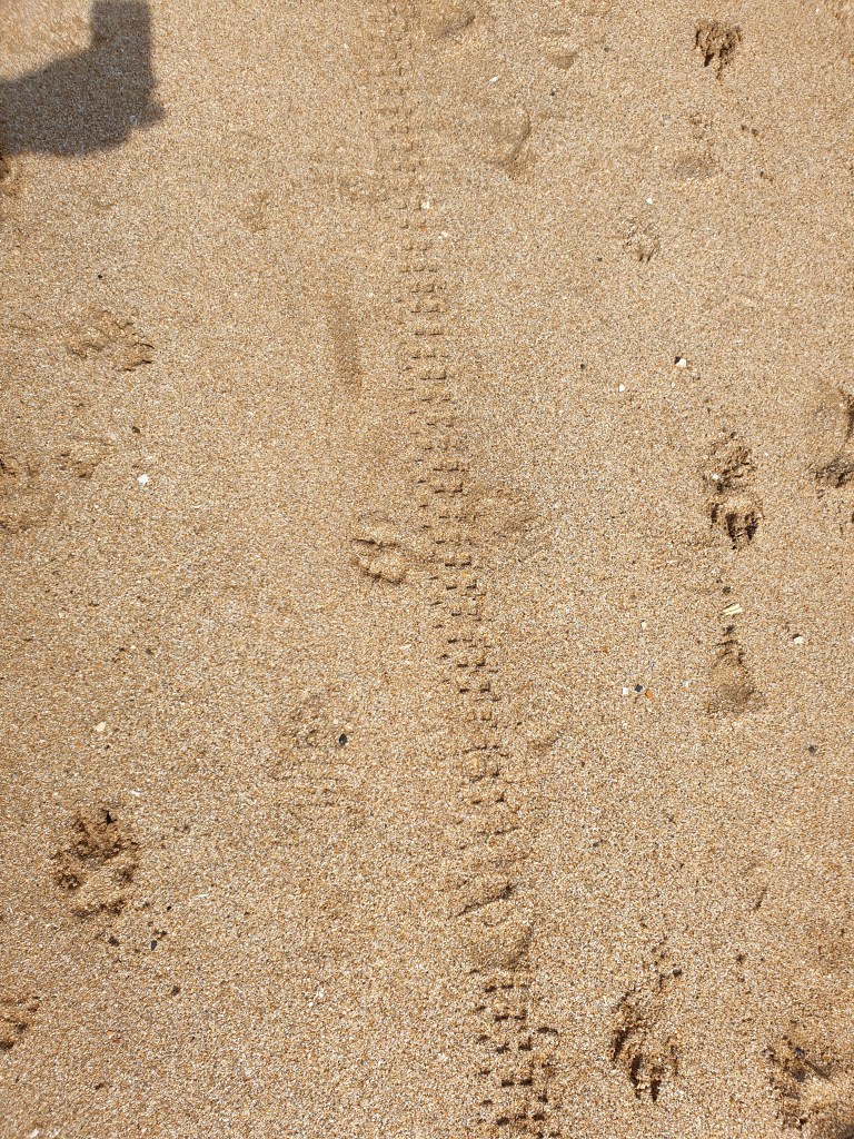Not everything that travels on a beach is animal or human. Sometimes you can find tracks from bikes or even tractors that are launching boats into the sea.