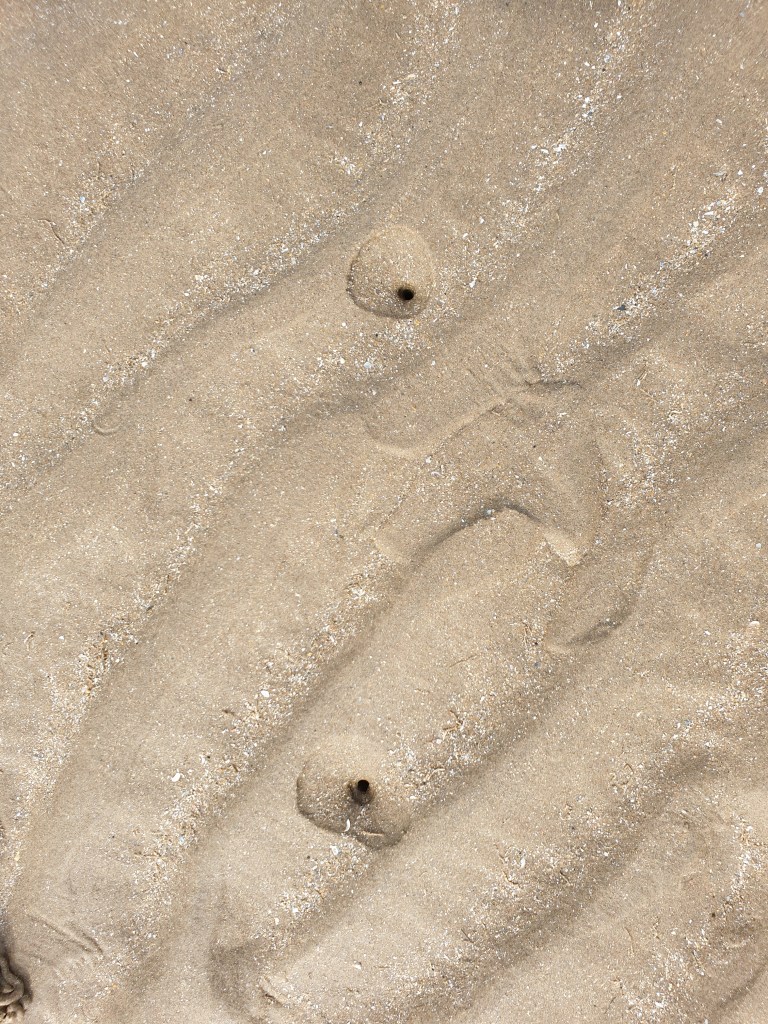 The burrows are normally a small indentation or hole in the sand. (Lugworms also have holes in the sand before they have casts of sand).