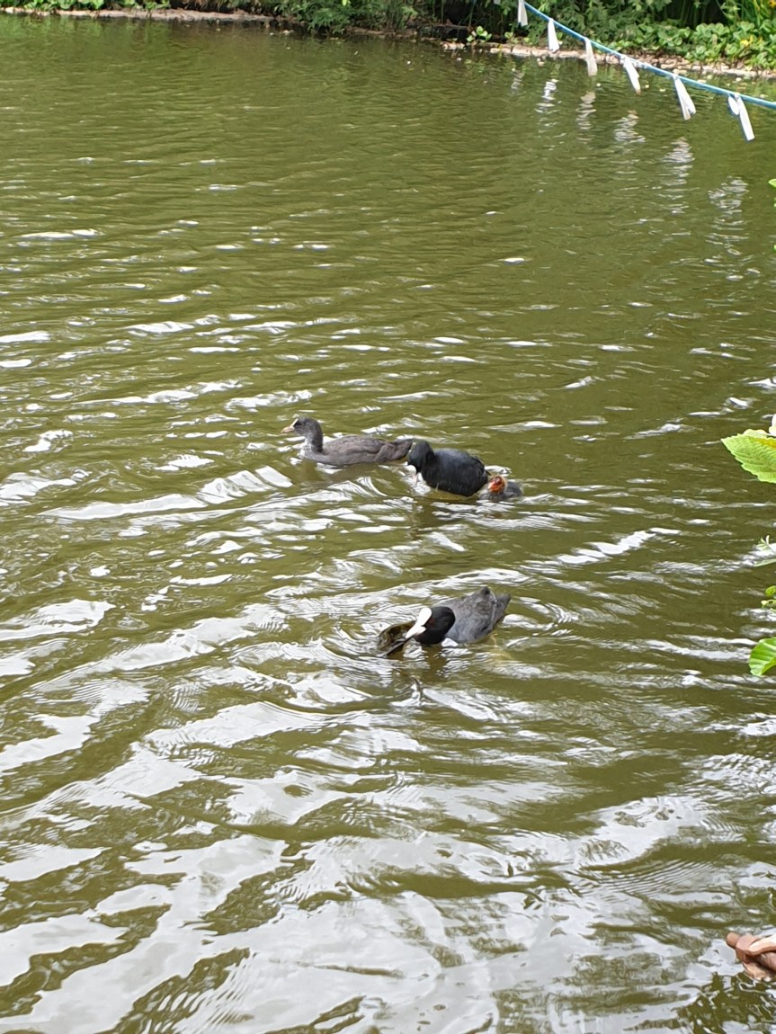 Bit sad that there was only one baby with the as last weekend there were 2 others making 3. Thats the circle of life. Possibly taken by predators such as Pike, Heron or Fox. More likely to be a Pike as there are a couple of big ones on the pond/lake.