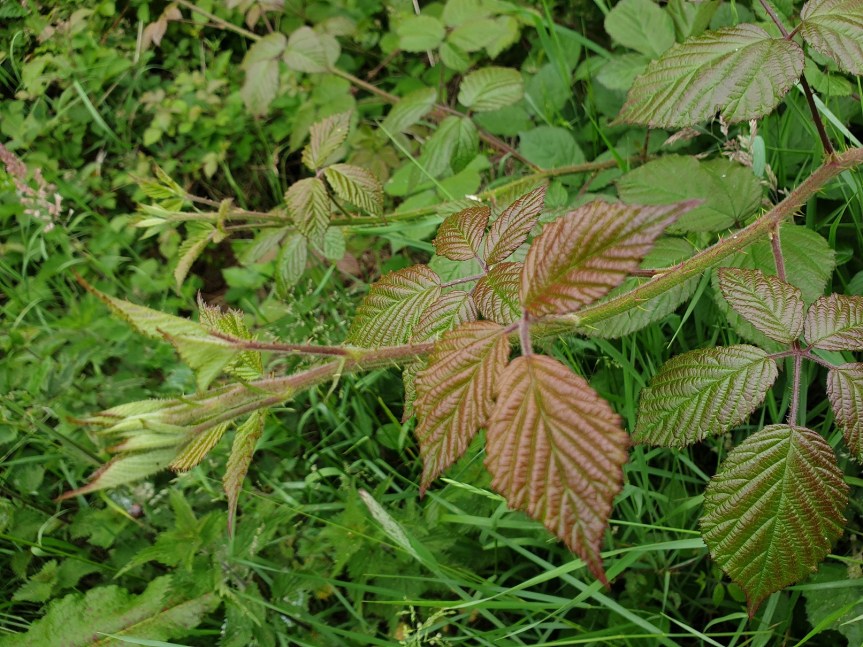 The thorny bush of the Bramble can produce blackberries, raspberries, or dewberries. In this case the Brambles in the photos produce Blackberries.