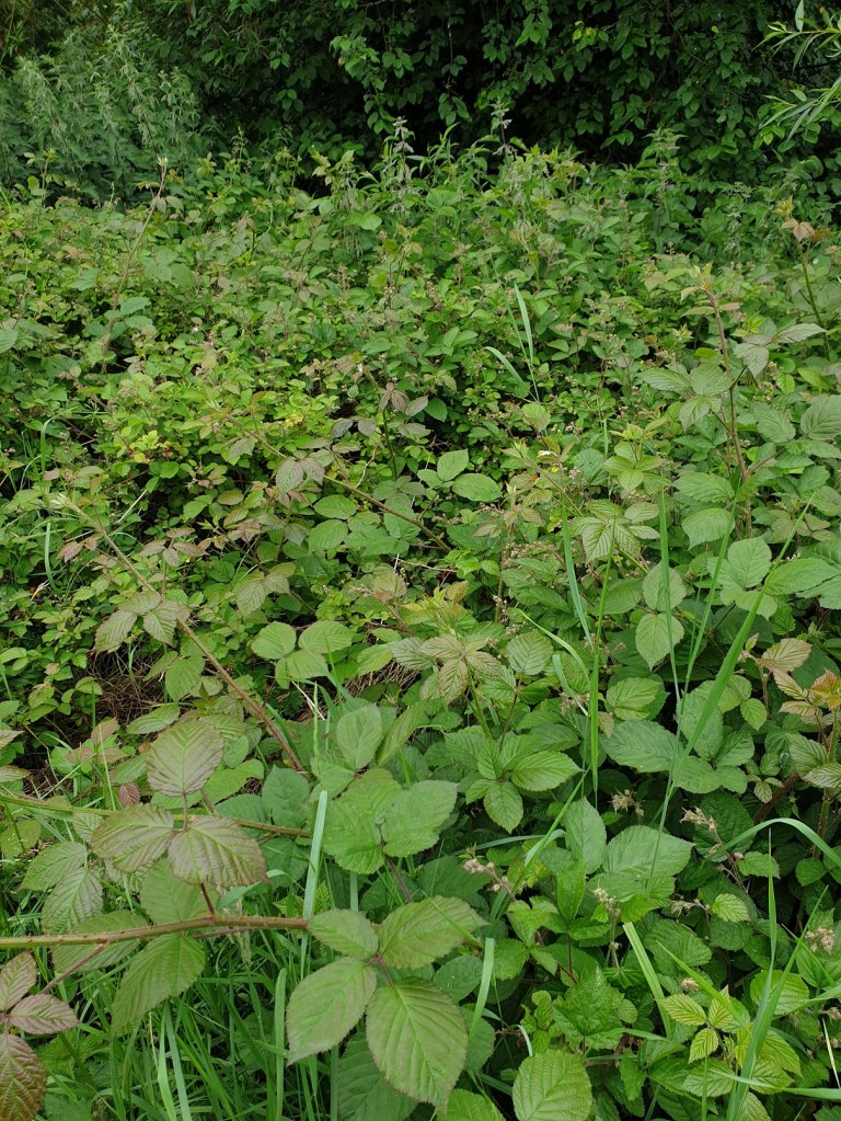 The humble Bramble/Blackberry (Rubus fruticosus) is a staple plant of many hedgerow and thicket. Its distinctive thorny creeping tendrils flowering with white flowers during the summer and rich tasty fruit in the autumn provide a source of food for a wide variety of animals, birds and humans.