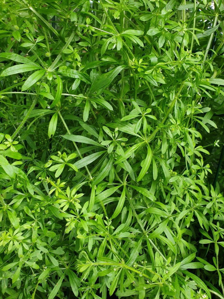 Goosegrass (Galium aparine), also known as Cleavers, Sticky Willy, Sticky Weed…. there are quite a few names for this plant. If your not familiar with the names, maybe the use of it, as lots of people pick some of the plant and throw it at each other as it sticks to clothes due to the tiny hooked hairs on the leaves and stalks. Know it now?